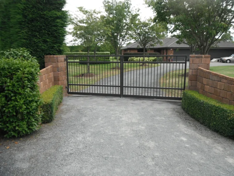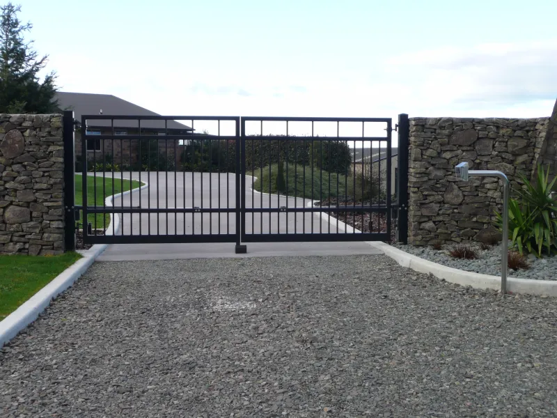 Manor Double Swing gates come with a set (4, 2 for each side) of our standard adjustable steel hinges.