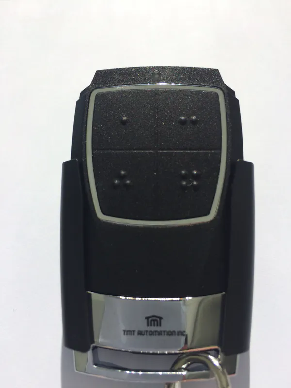 TM4 version of 4 button remote for TMT automation models. Goes with the Boxer slider motor, or the Terrier, Mastiff, and Papillon swing models.